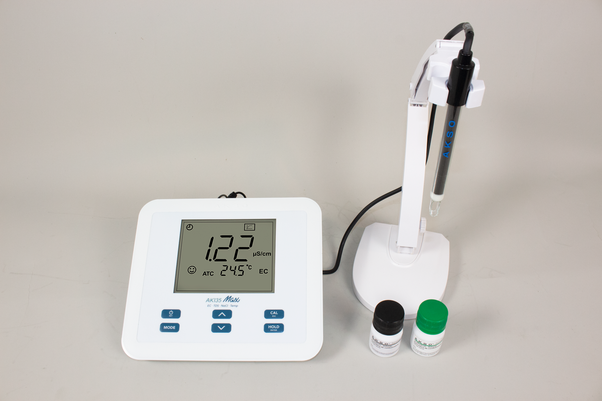 A medição de condutividade elétrica é fundamental para avaliar a concentração de íons dissolvidos em uma solução, sendo amplamente utilizada no controle da qualidade da água, no monitoramento de processos industriais e na verificação da pureza de soluções químicas. O AK135 é um medidor de condutividade de bancada projetado para aplicações laboratoriais que exigem estabilidade de leitura, correção térmica adequada e repetibilidade analítica. O instrumento opera em ampla faixa de medição, permitindo a análise de águas de baixa mineralização até soluções de maior condutividade. Utiliza célula de condutividade com constante K=1,0 e sensor de temperatura integrado, possibilitando compensação automática de temperatura e correção dos resultados conforme variações térmicas da amostra. Realiza calibração em pontos fixos ou personalizáveis, oferece fator de conversão de TDS ajustável e permite a leitura de condutividade, TDS, salinidade e resistividade. Com memória interna para 100 registros, o AK135 favorece rastreabilidade e organização de dados em rotinas laboratoriais, sendo indicado para processos que demandam monitoramento confiável da qualidade da água.