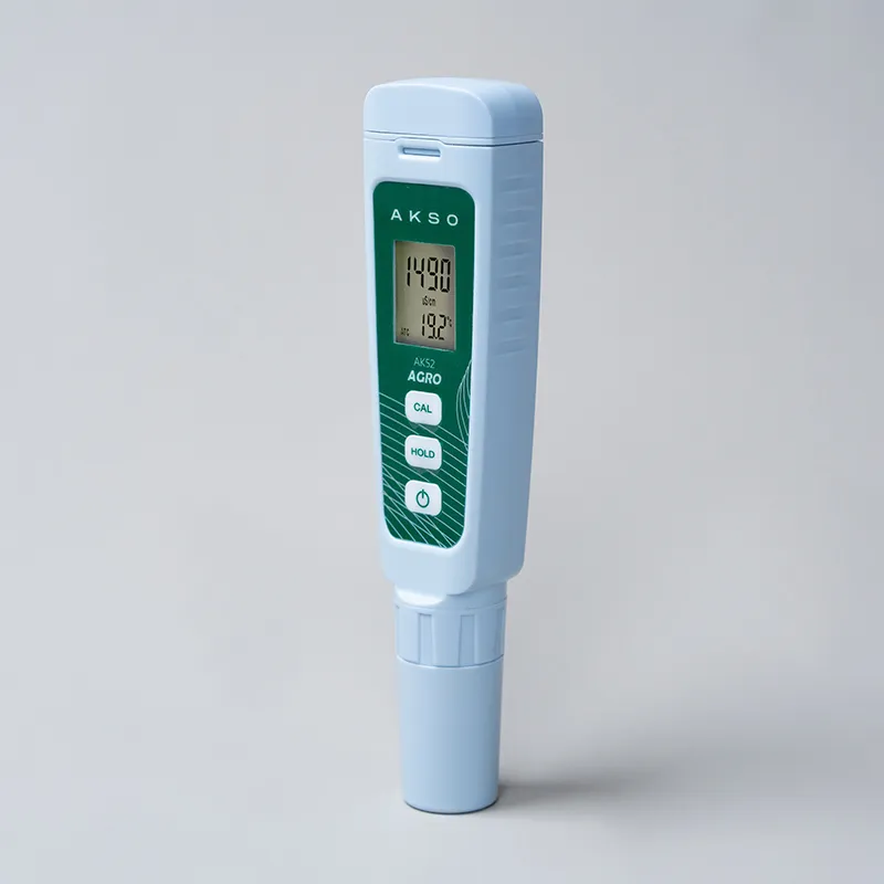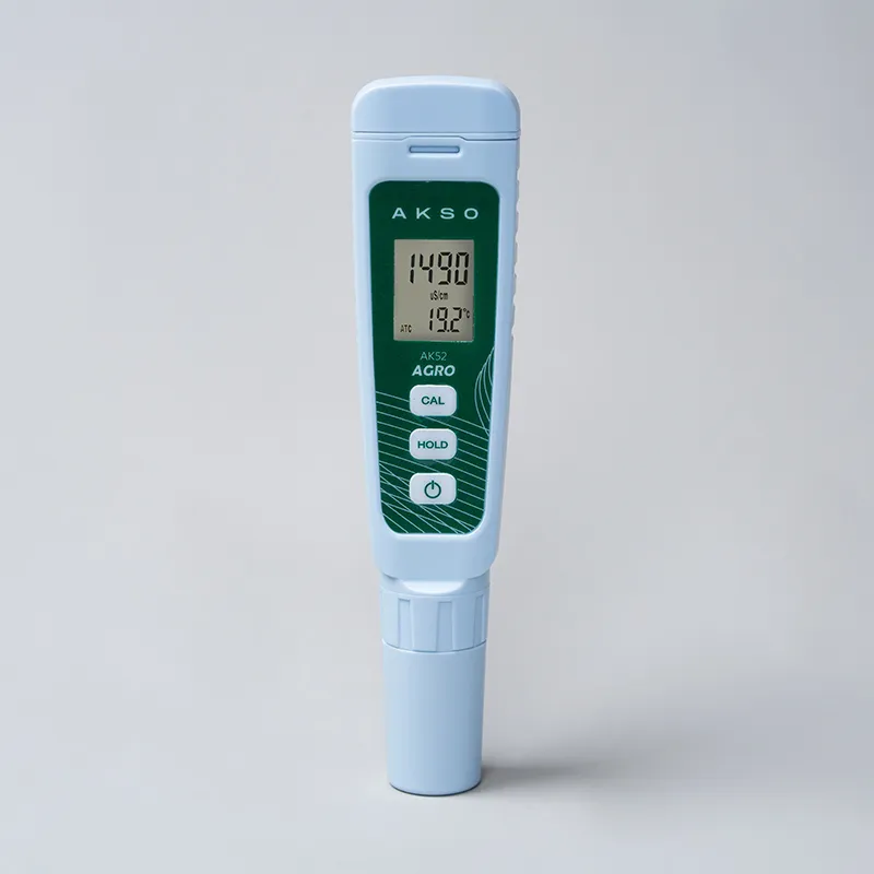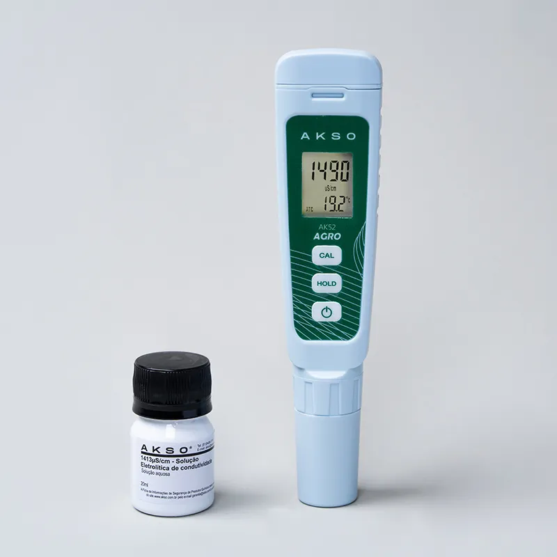 Na hidroponia, o controle da condutividade é fundamental em todas as etapas do sistema. Dessa forma, o AK52 atende medições na calha, no slab e na coleta do drenado, pois opera na faixa de 0 a 3999 µS/cm. Ao mesmo tempo, na fertirrigação, o controle da temperatura contribui para a adequada dissolução de fertilizantes nitrogenados, fosfatados e micronutrientes. Durante a medição, o display exibe simultaneamente a temperatura da amostra. Com isso, o operador acompanha as variáveis críticas em campo.