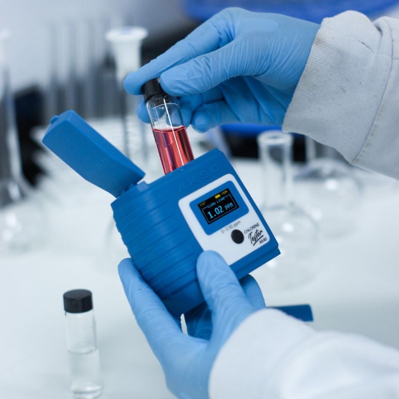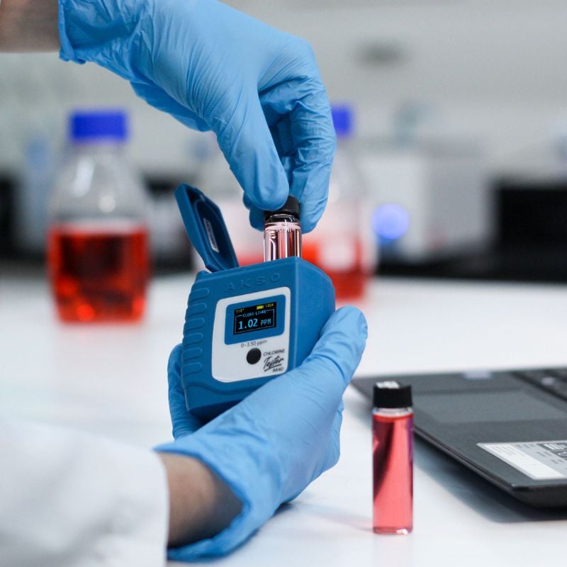 O AK40 Cloro Tester da Akso é um fotômetro portátil de alta precisão, desenvolvido para realizar medições precisas de cloro livre e total em diferentes tipos de amostras.