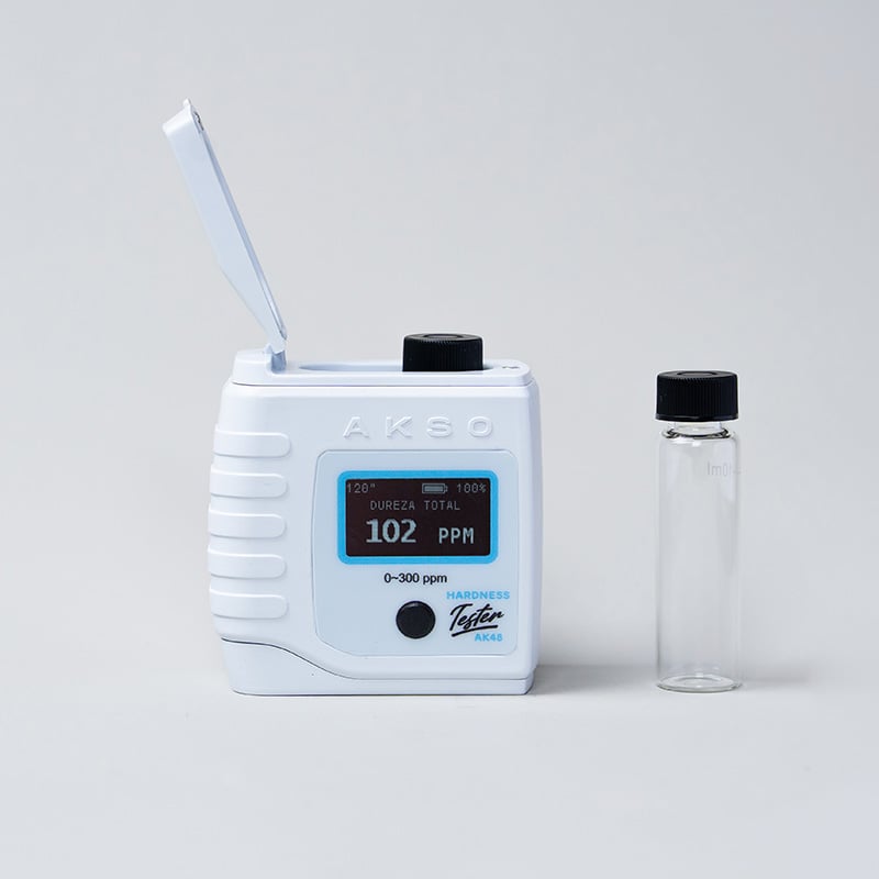 Além disso, esse fenômeno pode fragilizar tubulações e interromper processos industriais. O AK48 é compatível com a Portaria Nº 888 GM/MS, que estabelece como valor máximo permitido a concentração de 300 ppm. Portanto, o instrumento permite a avaliação da eficiência de abrandadores por troca iônica, pois fornece medições instantâneas que determinam a ocorrência de fuga de dureza. Com isso, o equipamento pode ser utilizado em rotinas de controle de qualidade. Além disso, o dispositivo é compacto, intuitivo e equipado com display OLED, sendo aplicado em análises rápidas em campo ou laboratório.