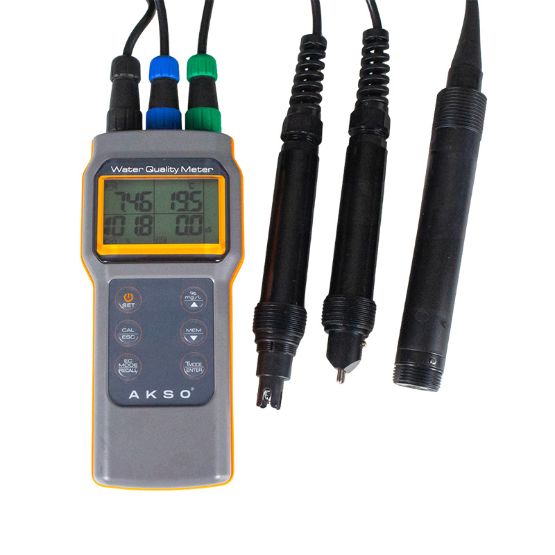 AK88+ é um medidor multiparâmetro projetado para análises completas da qualidade da água, realizando medições de pH, condutividade, salinidade, oxigênio dissolvido, TDS e temperatura. Prático e eficiente, o instrumento permite que todos os parâmetros sejam obtidos em uma única imersão, exibindo os resultados simultaneamente em seu amplo visor, otimizando rotinas de campo e laboratório.