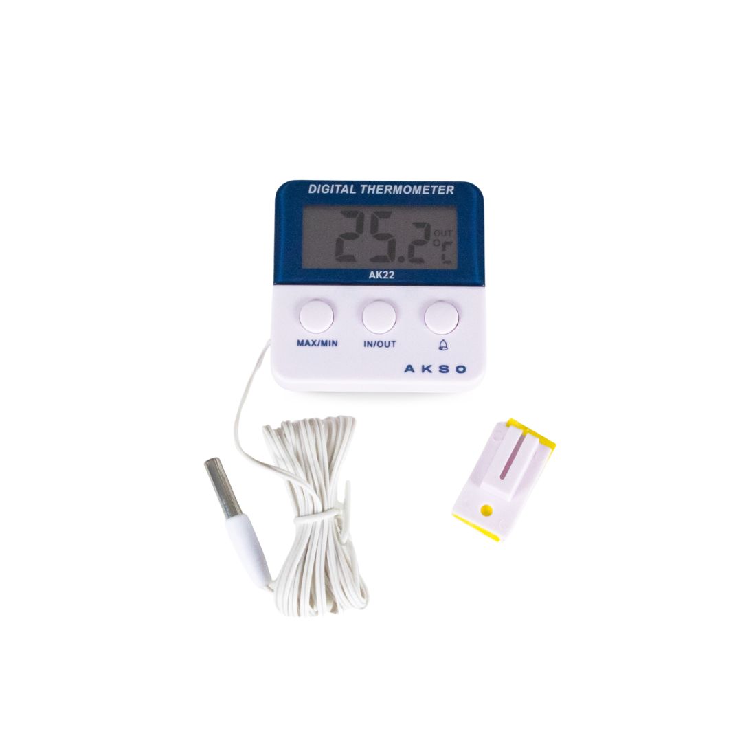 O Termômetro com Alarme AK22 é um simples e prático instrumento de medição de temperatura com escala de -50 a 70°C (sonda) e -20 a 50º (ambiente).